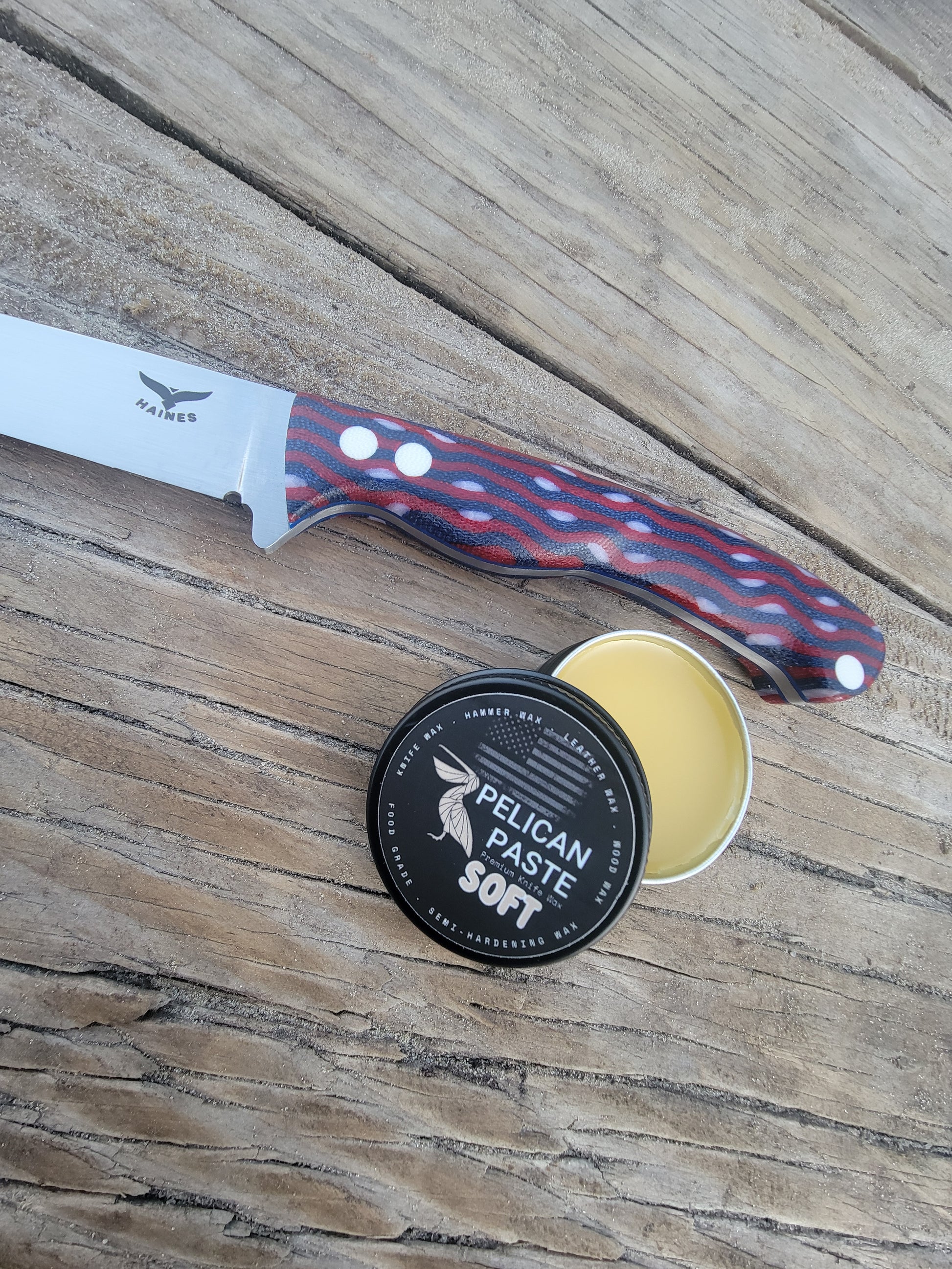 So if you have a knife or tool that you want to protect from the elements and from rust, Pelican paste is your new best friend. It is great for Damascus Steel!